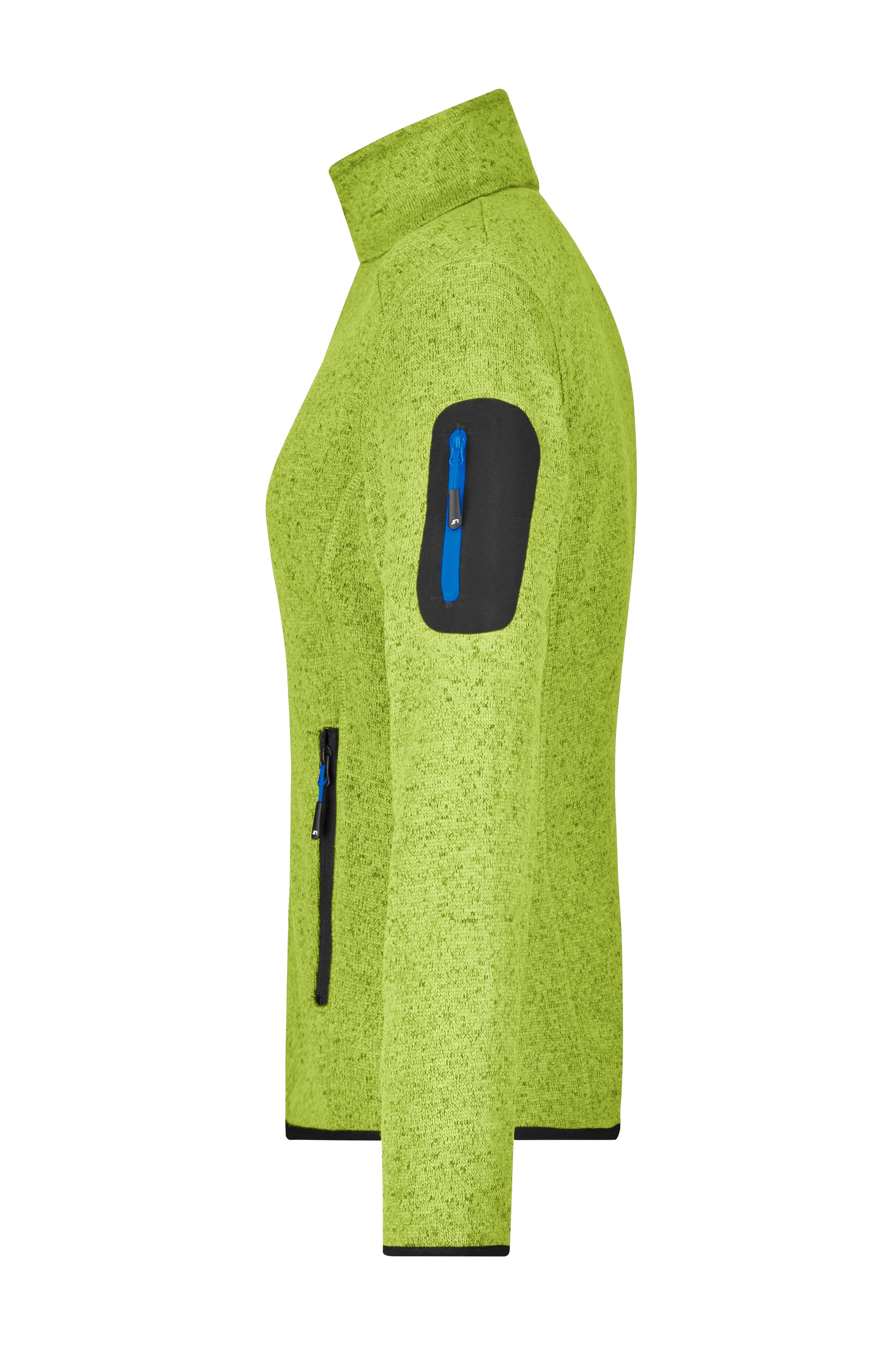 Strickfleece in Melange-Optik liegt im Trend, die weiche Fleece-Oberfläche gepaart mit einer kernigen Strickung ergibt eine sehr hochwertige und robuste Jacke, die sowohl in der Freizeit als auch auf der Arbeit ihren Einsatz findet.