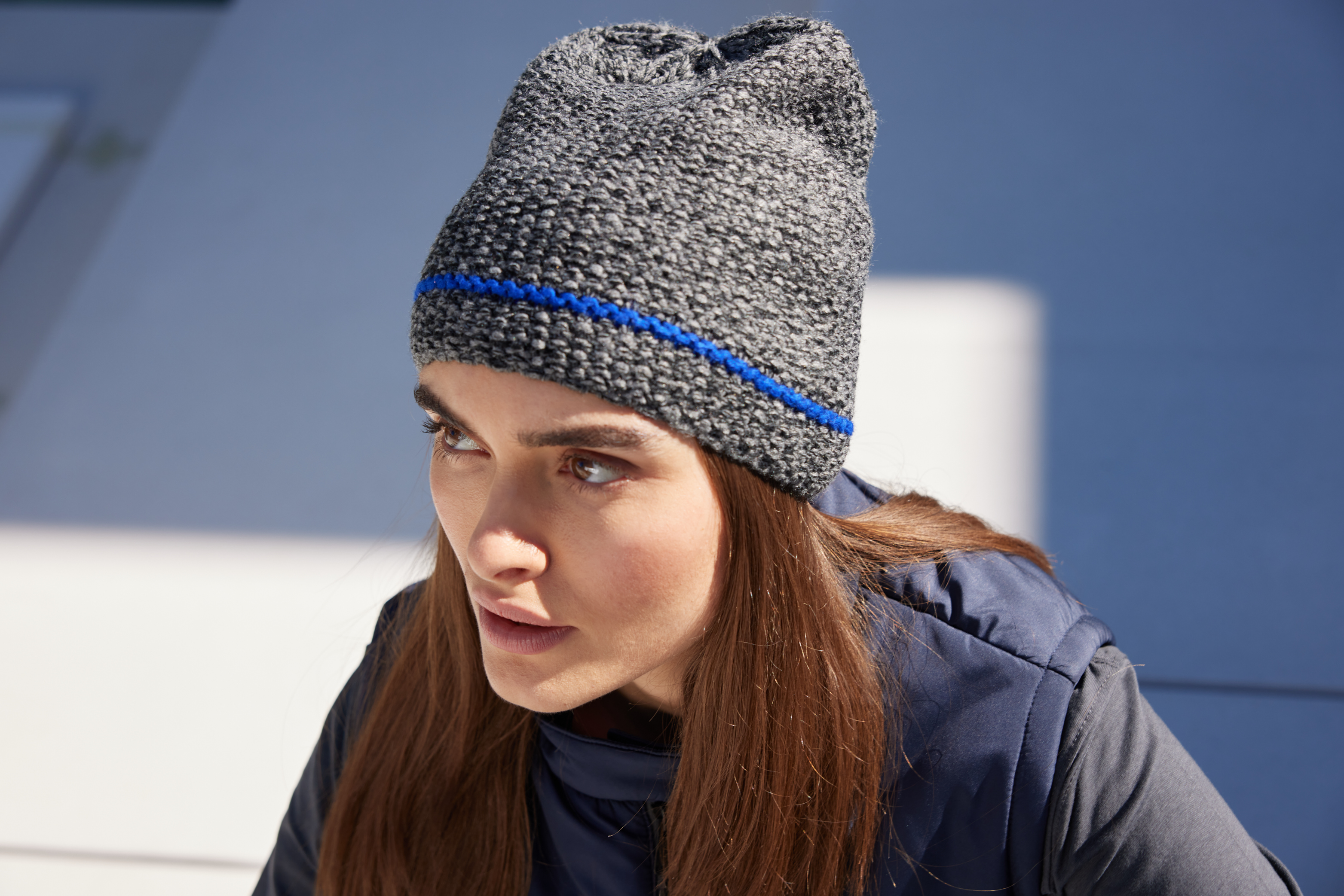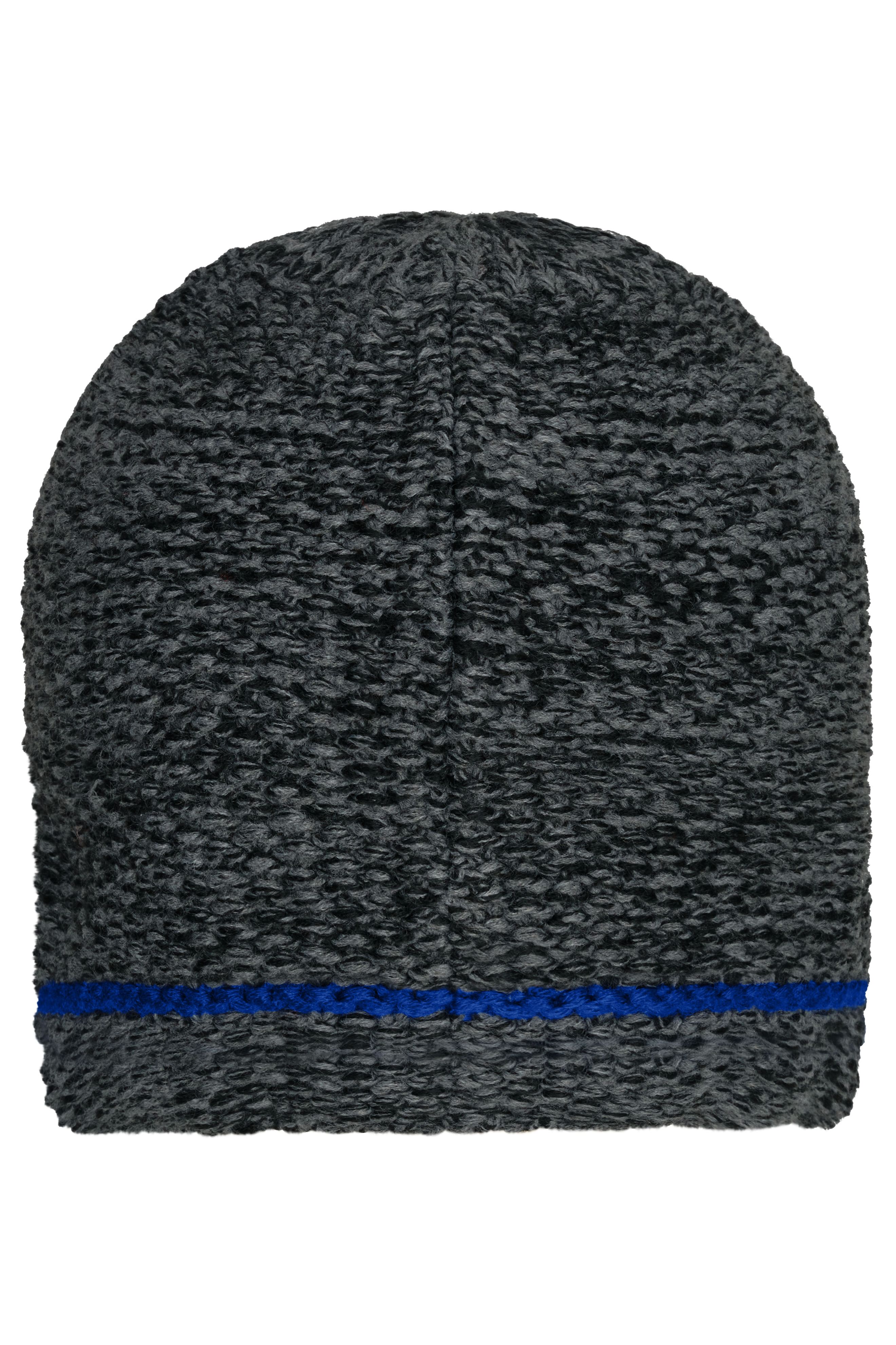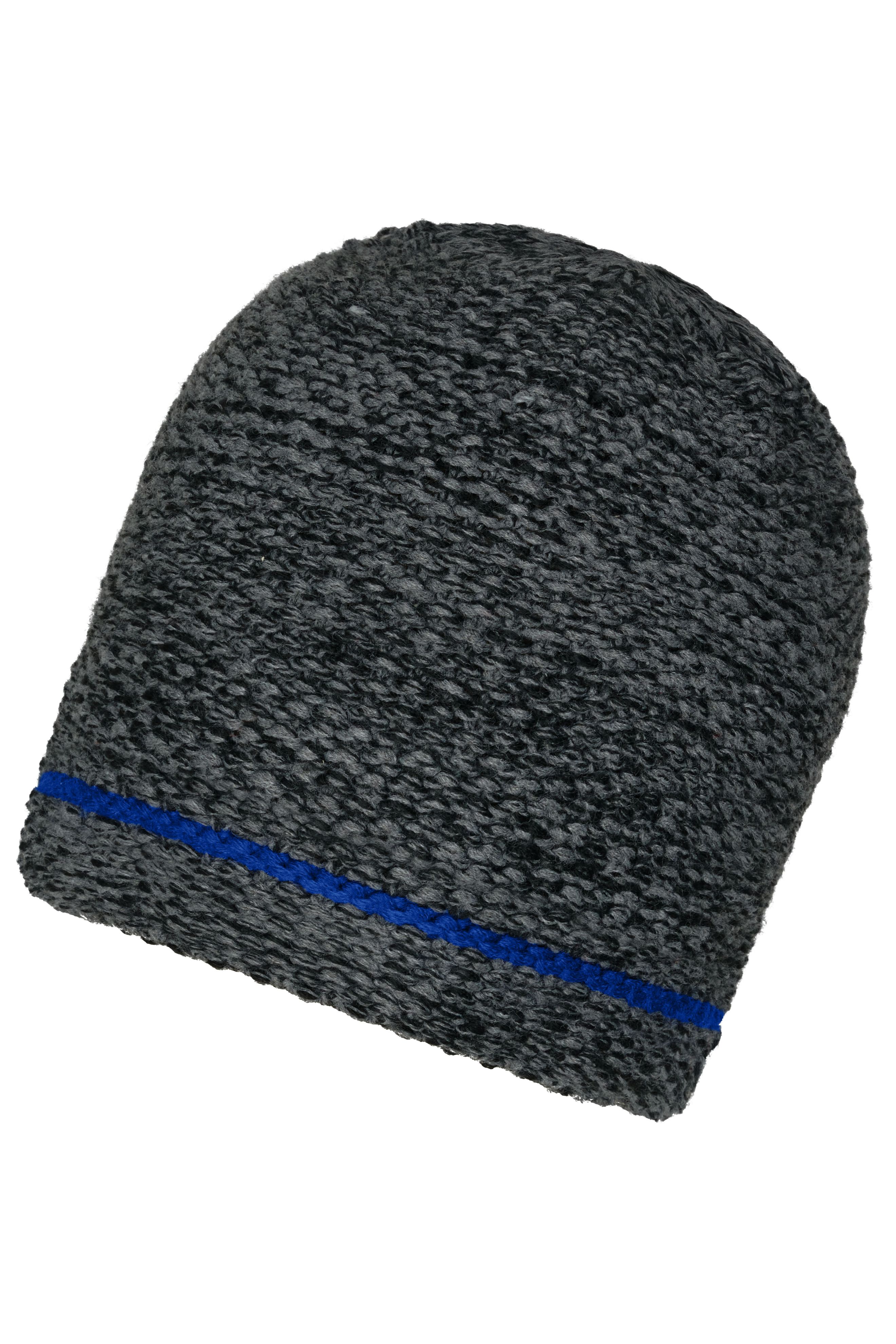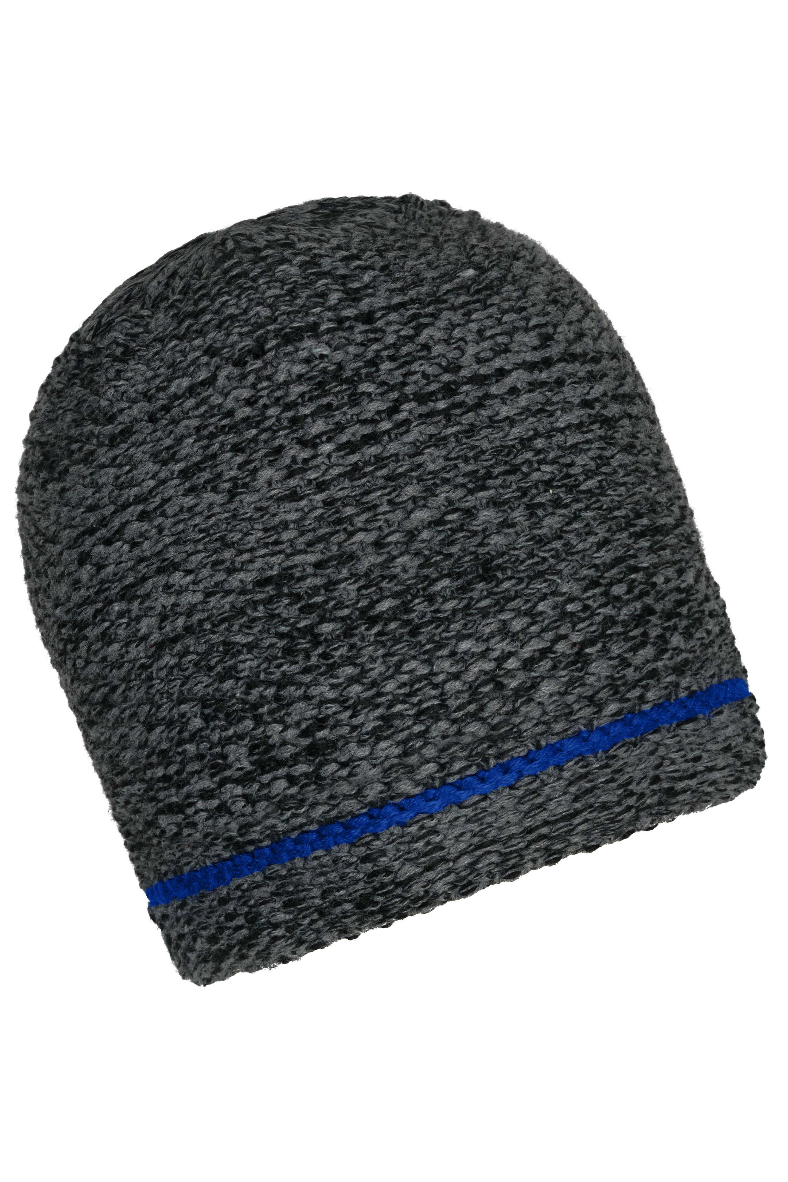 Grob gestrickte Wintermütze mit Kontraststreifen