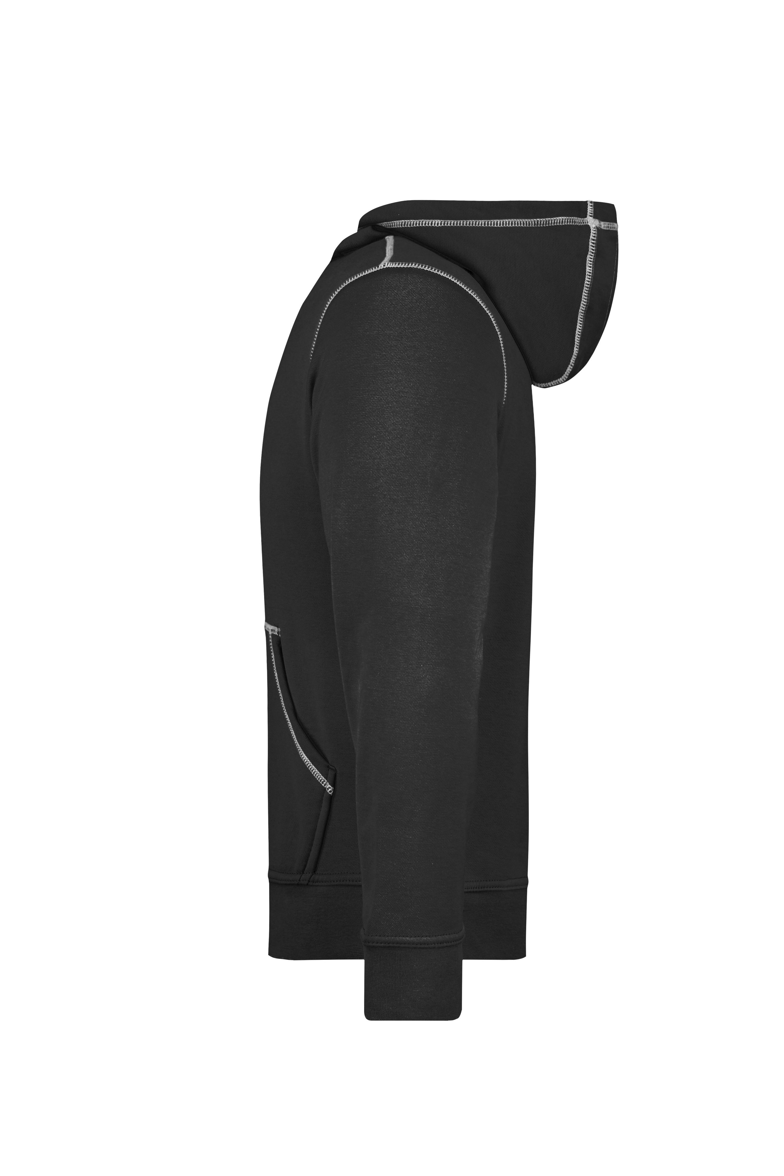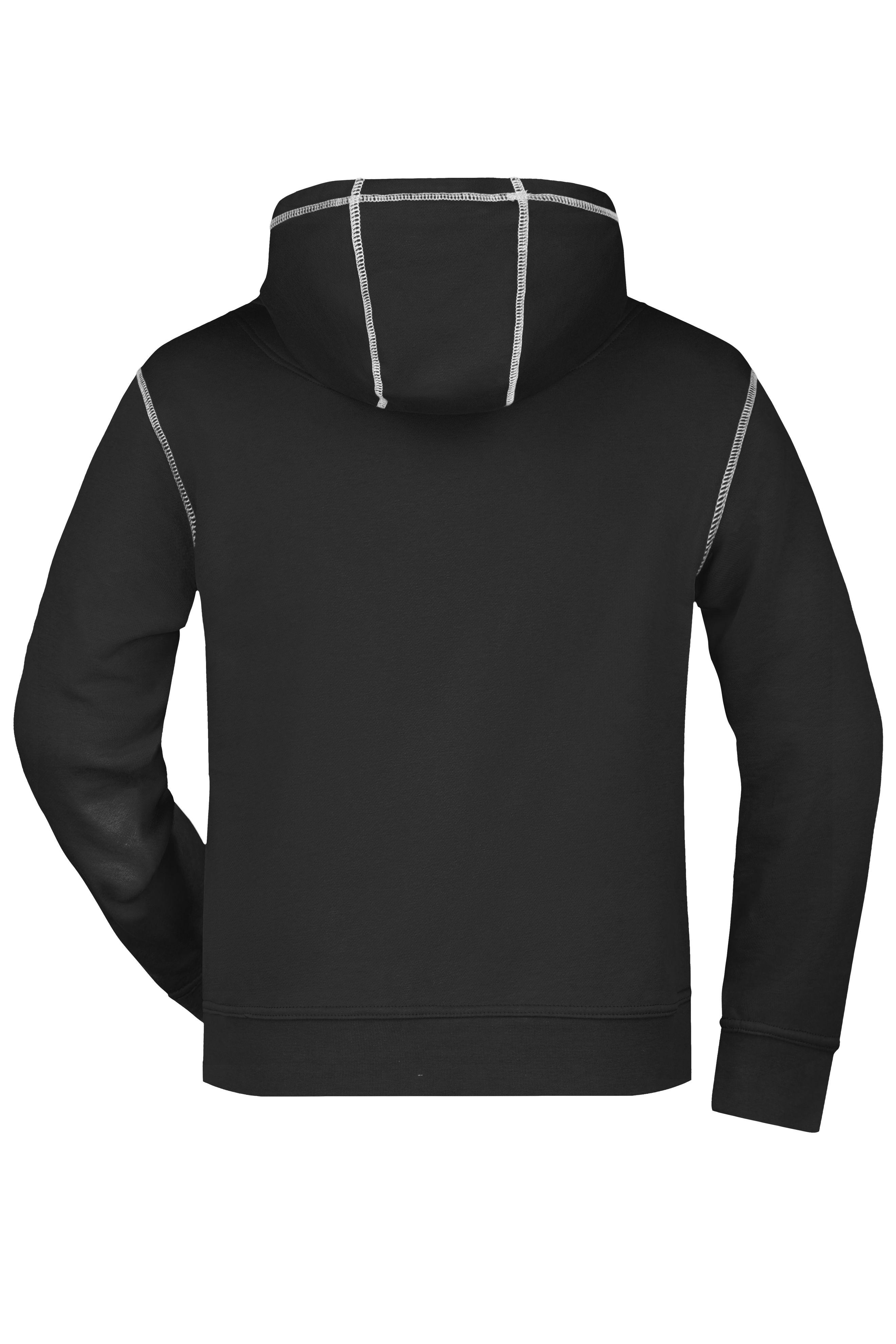 Zum Hingucken verleiten auch die kontrastfarbigen Flatlocknähte, besonders die große Känguruhtasche kommt dadurch schön zur Geltung.