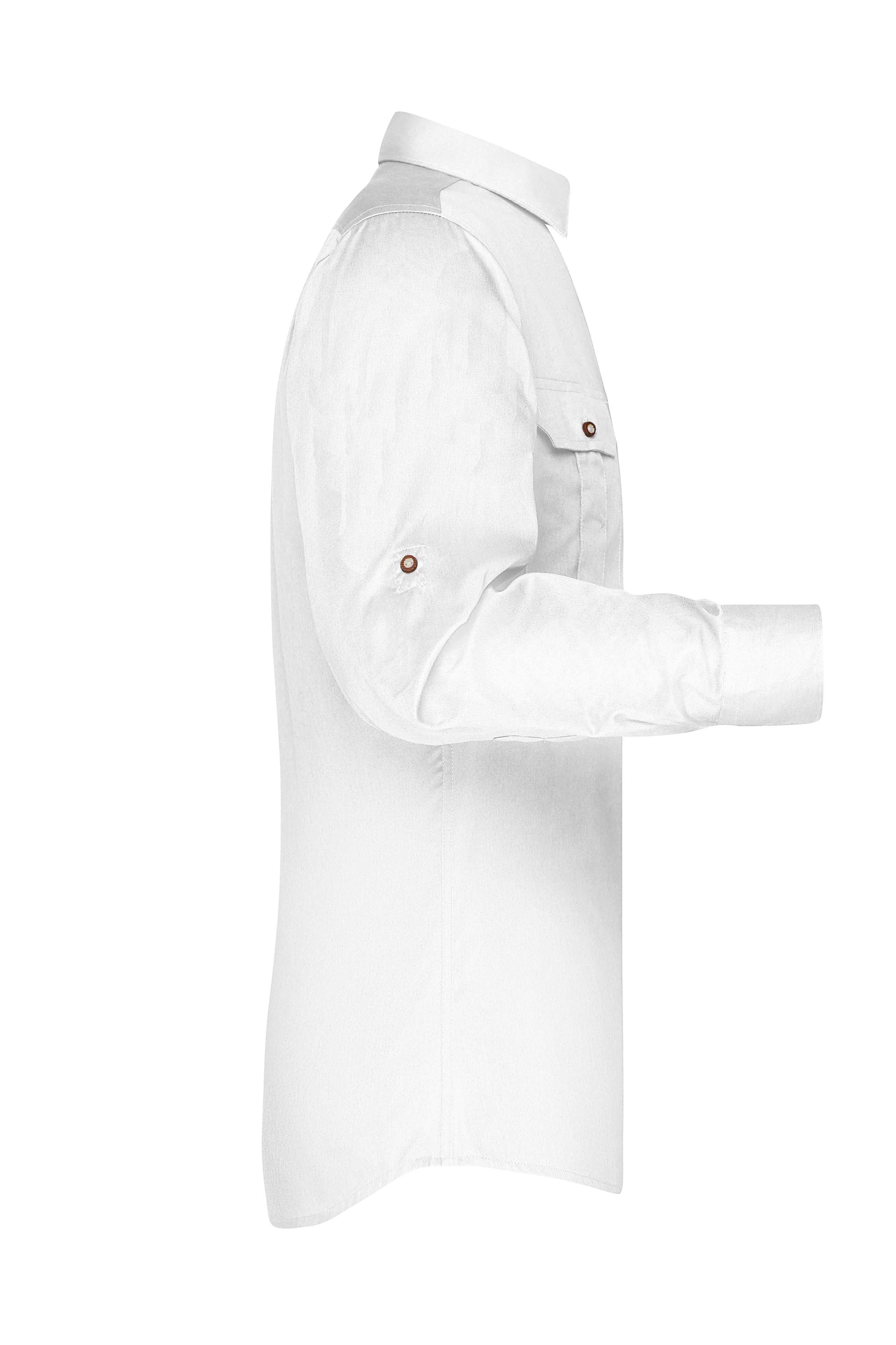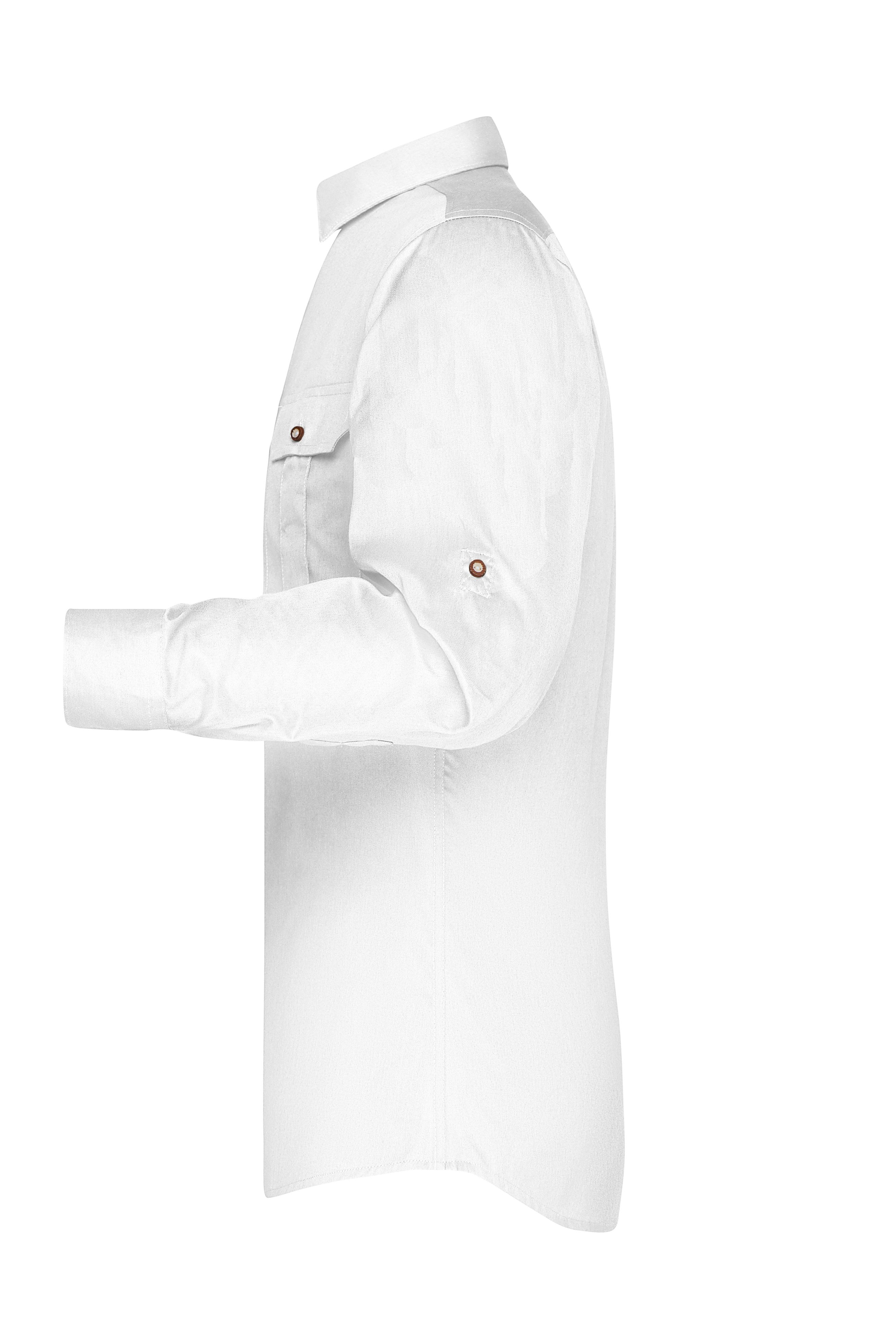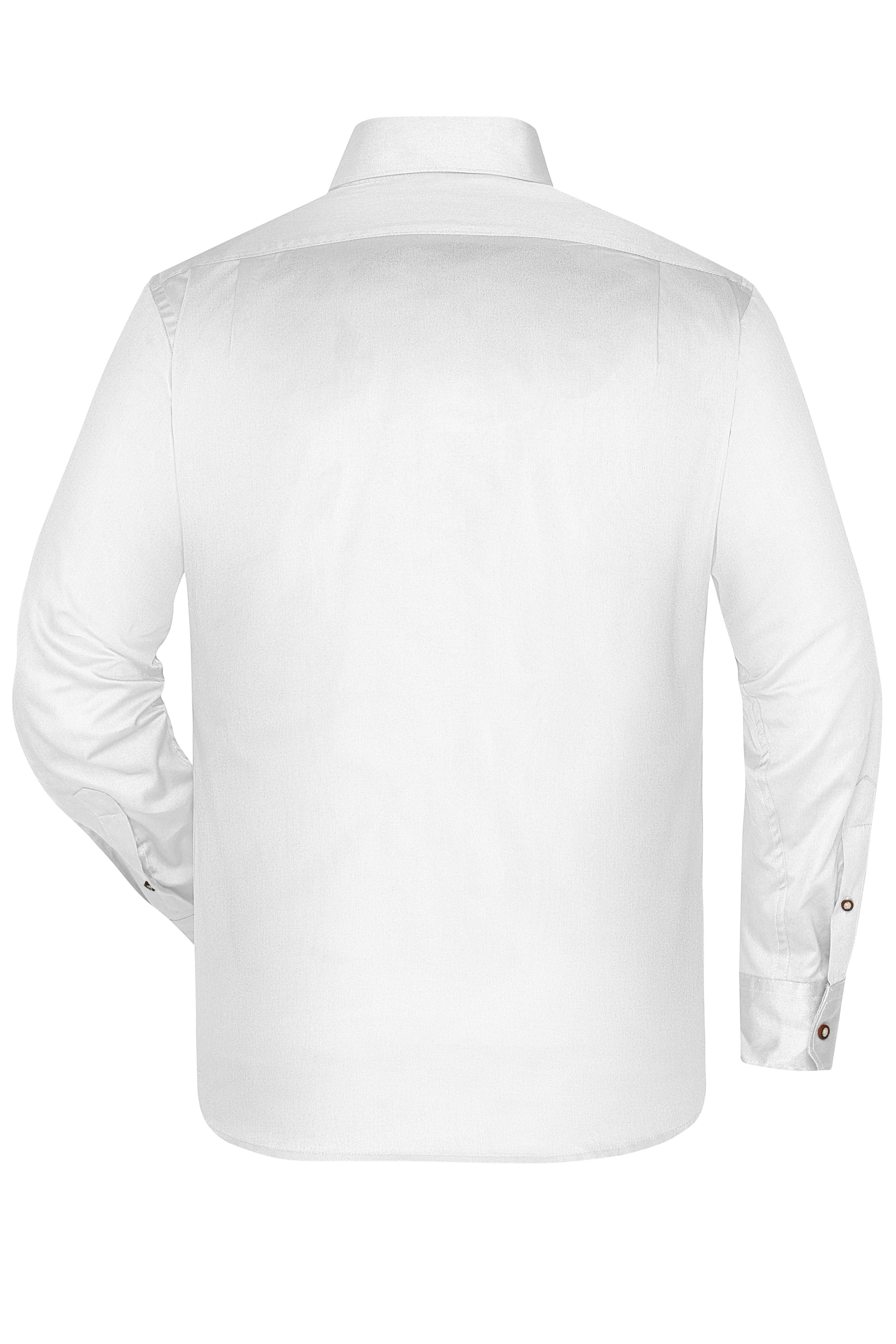 Dieses praktische Hemd aus hochwertigem Baumwoll-Twill passt mit seinen Hornimitatknöpfen zu jeder Lederhose, schließlich mag nicht jeder dazu ein kariertes Hemd tragen.