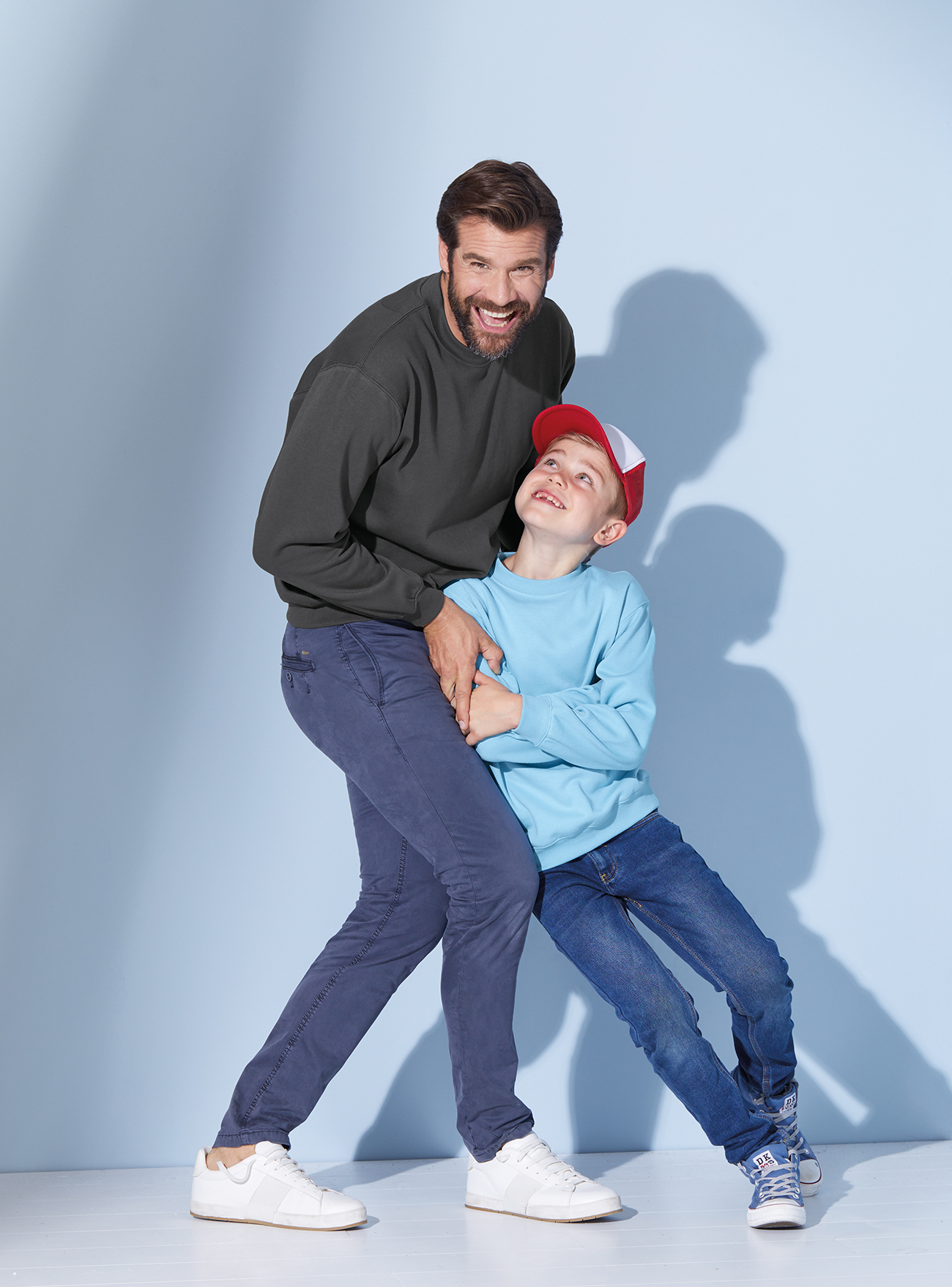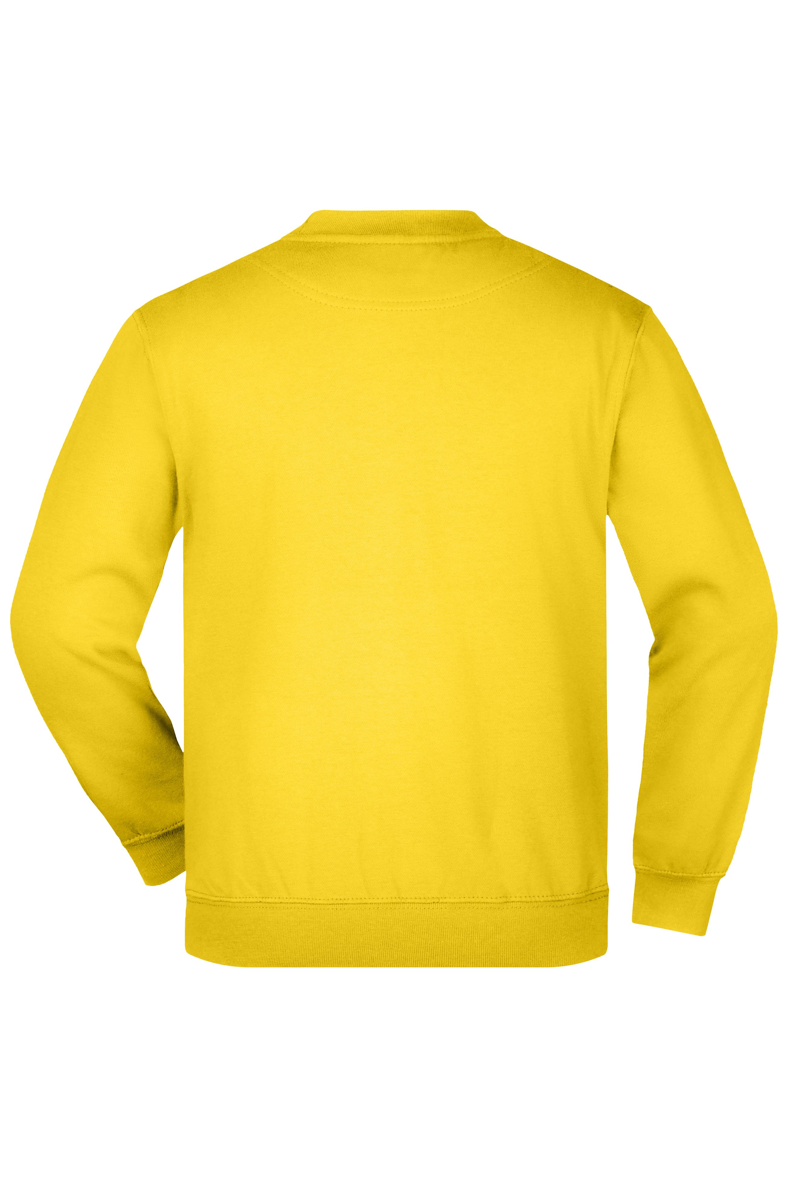 Ein bequemer und angenehm warmer Pulli für Schule und Freizeit aus innen weich angerauter Sweatware. Gerader Schnitt mit stabilen Kappnähten. Halsausschnitt und Bündchen wurden mit Elasthan verstrickt und sind so besonders langlebig.