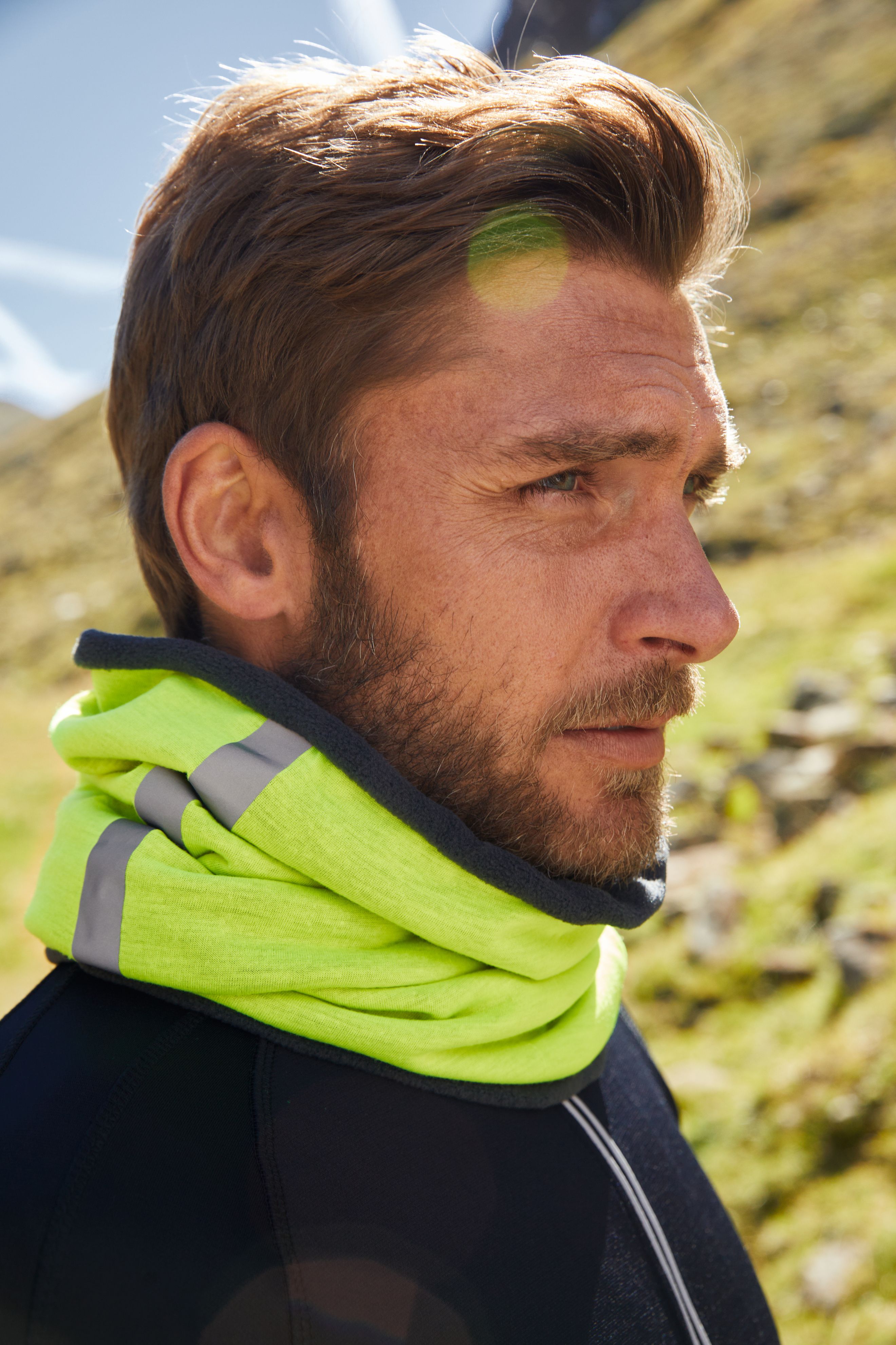 Beim Laufen, auf dem Rad oder sogar beim Ski- und Schlittenfahren begleitet Euch dieser warme Loopschal sicher durch die Dunkelheit oder das Schneegestöber. Innen angenehm warmer Fleece, außen elastischer Jersey, gerne auch bunt, aber auf jeden Fall modisch reflektierend bedruckt. In den stolzen 50cm Länge lässt es sich über Kinn und Nase bis zu den Ohren warm einkuscheln. 30 cm Breite liegen einem Erwachsenen bequem an, ohne den Hals einzuengen.